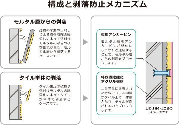 タイルの美しさを損なわずタイルの剥落を防止する「エバーガード工法」